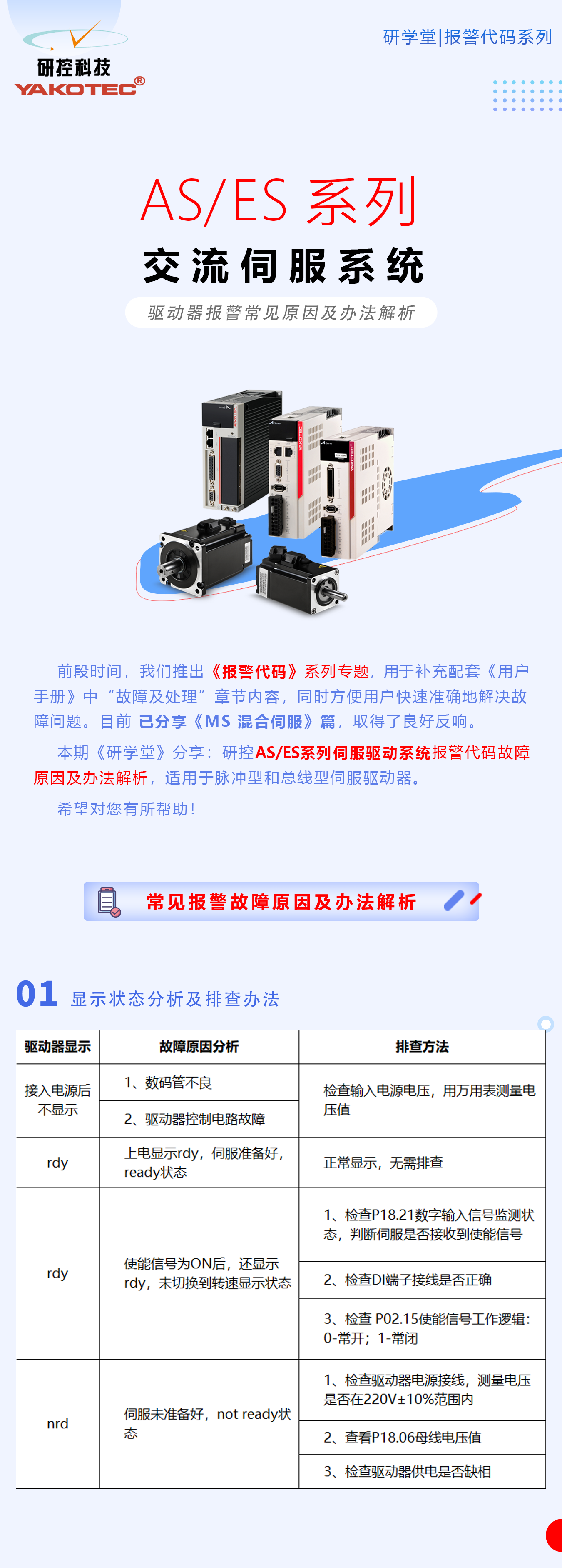 研學堂|AS/ES系列交流伺服報警原因及辦法解析
