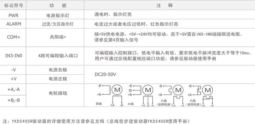 YKD2405R總線型步進(jìn)驅(qū)動(dòng)器是在數(shù)字型步進(jìn)驅(qū)動(dòng)器丫KD2405M基礎(chǔ)上增加了總線通訊及單軸控制器功能??偩€通訊采用